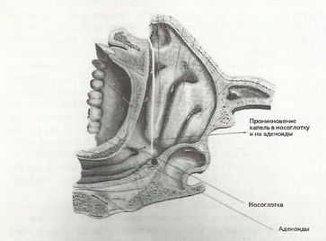При закапывании капель очень важно применять специальные приемы, благодаря которому непосредственно в носоглотку, растекаясь при этом по всей ее поверхности (глубокие отделы носа и аденоиды).